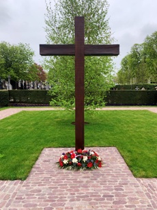 est une croix confectionnée d’anciennes poutres du SS-Sonderlager Hinzert (Hunsrück) par un ancien prisonnier politique de ce camp. En 1946, le gouvernement avait put faire rapatrier sur le sol luxembourgeois les dépouilles mortelles exhumées de 78 résistants luxembourgeois assassinés au camp de Hinzert, exécutés à la prison de Köln-Klingelpütz, morts sous les bombardements à Wiesbaden ou fusillés à la prison de Francfort-Preungesheim : ils furent inhumés en ce lieu qui se dota en 1960 d’un parvis. Lors des travaux d’agrandissement et de réaménagement du site, une statue en bronze dite « Le prisonnier politique » fut érigée, œuvre de Lucien Wercollier, lui-même résistant et ancien prisonnier politique de Hinzert. Ce monument symbolise les souffrances endurées par ceux qui se sont opposés à la politique de l’occupant nazi de 1940 à 1945. C’est l’endroit où se rassemblent les survivants mais aussi les responsables politiques lors des commémorations.
