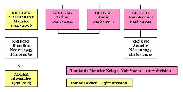Arthur, Annie et Jean-Jacques Becker reposent dans un même tombeau au sein de la 25ème division du cimetière Montparnasse.