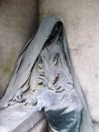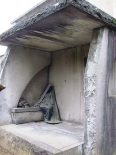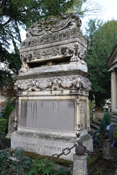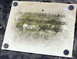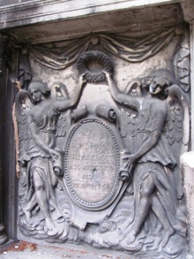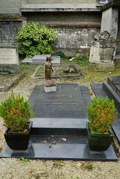 – Dans un autre tombeau, reposent les parents du sculpteur. Leur tombeau d’origine fut en partie détruit par la Première Guerre mondiale. Après la guerre, la veuve de Saint-Marceaux demanda à Pompon qu’il place l’une des oeuvres de son époux, Sur le chemin de la vie, sur le tombeau de ses parents.