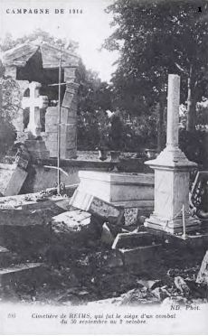 1926 :« Actuellement, le cimetière du Nord a effacé peu à peu les désordres occasionnés par la guerre. Des chapelles se sont réédifiées ou ont été réparées ; des pierres tombales ont été remplacées ; des croix et des monuments ont été relevés. Mais les mauvaises herbes ont envahi de nombreuses sépultures ; des mausolées brisés sont restés à terre et ils ne seront jamais restaurés faute de descendants pour s’en occuper. Nous ne pouvons que le déplorer, en souhaitant, qu’un jour, la municipalité puisse trouver les fonds nécessaires pour s’occuper des tombes de ceux qui n’ont plus personne derrière eux. Ce serait un hommage rendu à des Rémois qui, d’une manière ou d’une autre, ont servi leur Ville, travaillé à son accroissement et à sa prospérité. »