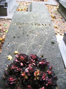 Peintre, dessinateur et lithographe, il fut l’un des meilleurs caricaturistes des Incroyables sous le Directoire. Son œuvre est éclectique : il fut un peintre de bataille (Austerlitz), des scènes de courses et de chasses (il vouait une passion aux chevaux), et sa production de lithographies est considérable. Fils du peintre Claude Joseph Vernet, il fut le père du peintre Horace Vernet, qui repose dans la 5ème division de ce cimetière. Géricault compta parmi ses élèves.