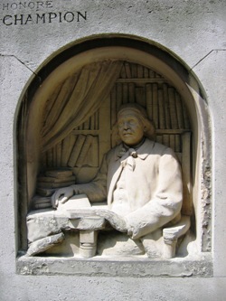 Sa tombe est ornée d’un haut-relief de Bartholomé qui le représente au milieu de ses livres.