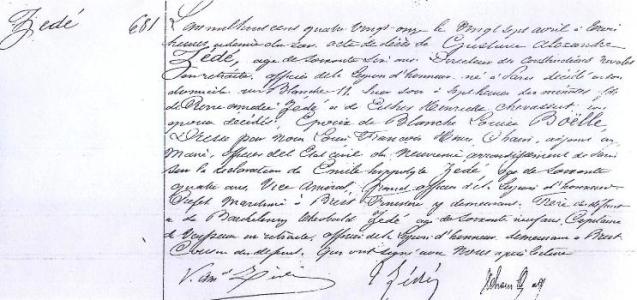 Acte de décès de Gustave Zédé - Paris.