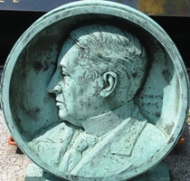Il repose sous un médaillon en bronze par François Cogné.
