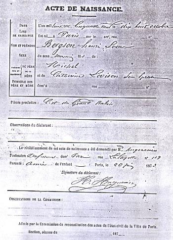 Reconstitution de l’acte de naissance d’Henri Bergson - Paris.