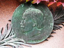 Le bas-relief en bronze qui orne sa tombe est l’oeuvre de Geoffroy Decheaume, qui repose dans le même cimetière.