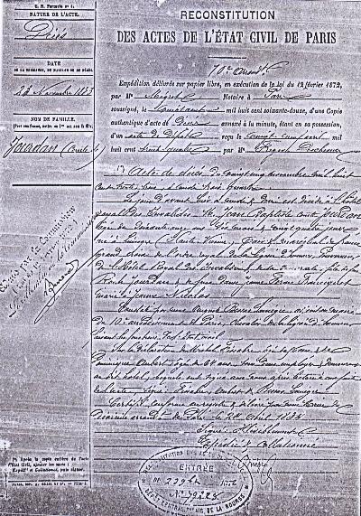 Reconstitution de l’acte de décès de Jean-Baptiste Jourdan - Paris.