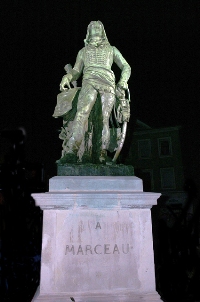 le dimanche 21 septembre 1851, soit 55 ans, jour pour jour après sa mort. La statue en bronze est l’œuvre du sculpteur Auguste Préault. Dans le socle, au pied de la statue, fut scellée une petite boîte contenant une partie de ses cendres, un exemplaire du programme de la fête d’inauguration, une copie du discours du Maire de Chartres, M. Charles Rémond, diverses pièces de monnaies de 1851, une médaille frappée à la mémoire de Marceau, le livre de M. Doublet de Boisthibault sur Marceau et le procès-verbal de l’inauguration.