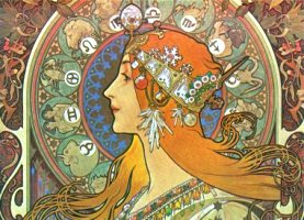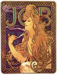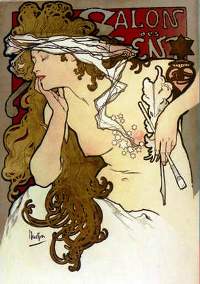Peintre et affichiste tchèque, il fut l’un des plus brillants représentants de l’art nouveau (lignes sinueuses, décors floraux) qu’il exprima dans ses panneaux décoratifs, ses modèles de bijoux ou ses robes. Il travailla à Paris et aux Etats-Unis, soit pour des artistes (on lui doit les affiches de promotion des pièces de Sarah Bernhardt), soit pour des marques publicitaires (Job, LU). Il fut en République tchèque un fervent patriote, décorant les bâtiments officiels, et réalisant, après l’indépendance, les premiers timbres et billets de banque. Il réalise enfin une gigantesque Epopée des Slaves.