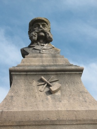 – D’élégants favoris sur le buste de la tombe Penot, qui nous apprend que son destinataire "fit lui même son tombeau, maintenant il s’y repose".
