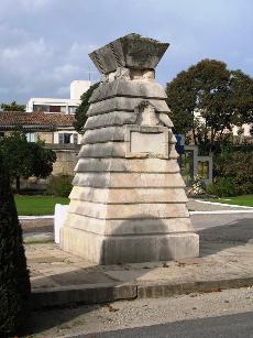 — La pyramide tronquée ornée d’un médaillon de Domenico Maggesi du banquier bordelais Jacques Galos (+1831), qui s’occupa des obsèques de son ami Goya.