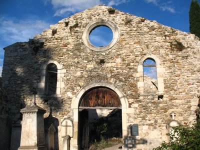 – Notre-Dame-de-la-Cale : cette église se situe à l’ouest de la ville, dans ce cimetière qui est attesté dès le Moyen Age, sur un site déjà occupé à l’époque romaine. Ses origines sont mal connues : elle est citée dès le XIe siècle, et on sait que des travaux y eurent lieu au XVe. Durant l’époque moderne, elle changea d’attribution : temple protestant au XVIe, elle redevint église catholique au XVIIe, mais perdit son privilège en raison de la construction de l’actuelle église Saint-Roch, plus centrale. Elle se dégrada ensuite. Les ruines visibles aujourd’hui sont celles d’une église reconstruite sous la Révolution. Elle fut amplement pillée, ce qui ajoute à la confusion. L’édifice actuelle est composite et donc très peu lisible. Il a été débroussaillé récemment. La présence de ces ruines en plein milieu du cimetière confère évidemment un grand charme à l’enclos.