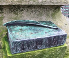 Pour la postérité, une plume et un exemplaire de la Comédie humaine en bronze.
