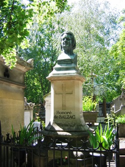 Balzac aimait se promener au Père-Lachaise : il y enterre la plupart de ses héros, décrivant à plusieurs reprises le cimetière dans son œuvre. Il est enterré avec son épouse polonaise, la comtesse Evelyne Hanska (+1882). Le buste qui orne sa tombe est de David d’Angers.