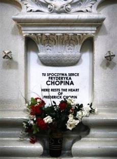 Le coeur de Chopin repose dans une urne de cristal scellée à l’intérieur d’un pilier de l’Eglise de la Sainte-Croix, un édifice baroque de la capitale polonaise. Une stèle cite un passage de l’Evangile selon Saint-Matthieu : "Car là où est ton trésor, sera aussi ton coeur".