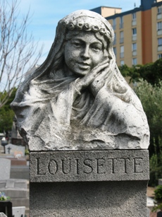 – Le buste de "Louisette", une jeune communiante - ou jeune épouse- fauchée très jeune, sur la tombe Jouanne.