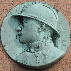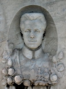 – Le médaillon en bronze par Gabriel Pech représentant un jeune soldat tombé en 1914 sur la tombe Malleville.