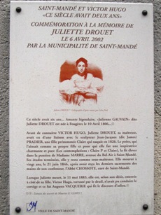 – à l’entrée du cimetière, une plaque posée par la municipalité commémore la mémoire de Juliette Drouet.