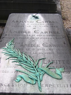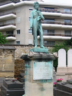 français, il prit très tôt position contre la Restauration. Il fonda avec Thiers le National, journal d’opposition constitutionnelle libérale, durant la monarchie de Juillet. A la suite d’une polémique de presse, il fut tué en duel par Emile de Girardin. Il repose sous une statue de lui faite par David d’Angers.