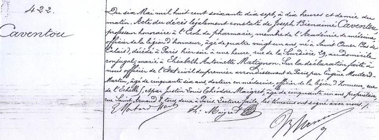 – Joseph Bienaimé CAVENTOU (1795-1877) : chimiste et pharmacien français, il travailla en étroite collaboration avec son collègue Pelletier. Ensemble, ils isolèrent, à partir de diverses plantes, une série d’alcaloïdes, dont la strychnine et la quinine. On leur doit également l’introduction du mot "chlorophylle".Dans la chapelle repose également son fils, Eugène (1824-1912), qui fut pharmacien et également membre de l’Académie de Médecine