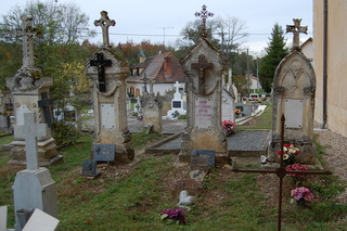 Bien sûr, ce petit cimetière n’héberge aucun monument d’exception, aucune célébrité... Il n’a pour lui que le charme de la patine et des herbes folles et des noms sur les stèles, qui nous en disent un peu plus sur les familles de ce villages, les lignées que l’on devine, à une époque où l’on quittait rarement son pays, le curé "en poste" pendant 46 ans, les résistants, ...