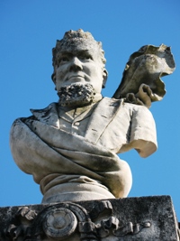 – Le compositeur François BATTANCHON (1810-1887), qui repose sous un buste en pierre, l’écharpe au vent !