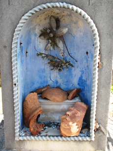 – Quelques oeuvres d’art éparpillées dans l’ensemble du cimetière sur les tombes de notables locaux.