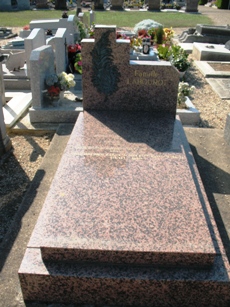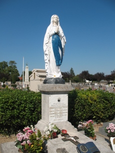 – Une vierge polychrome récemment nettoyée sur la tombe du curé François Laurent, seule statue du cimetière.