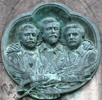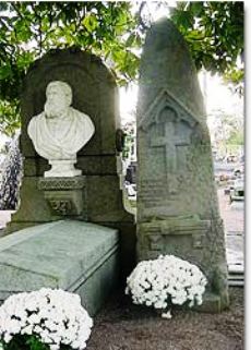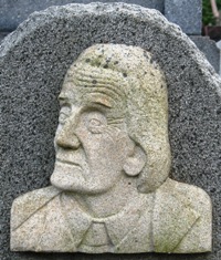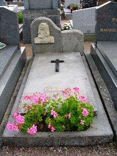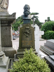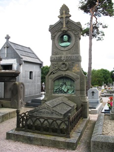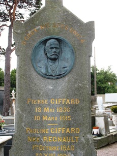 – Un médaillon en bronze signé Elie Le Goff sur la tombe de Pierre Giffard.