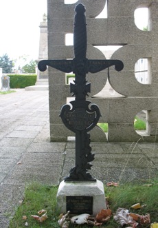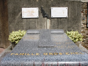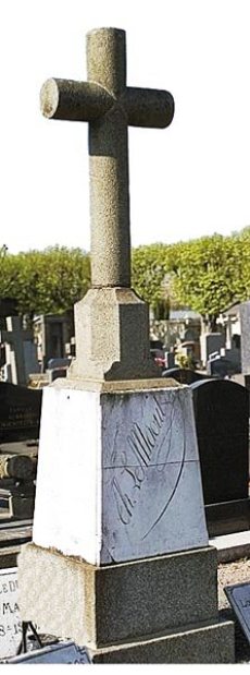 – L’aviateur Edouard Le Mounier possède un tombeau ouvragé : un buste en bronze sur une colonne de marbre rose, ainsi qu’une statue de femme voilée en deuil personnifiant la France, étreignant dans ses bras un oiseau blessé. Elle est l’oeuvre de Jean Boucher.