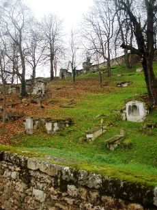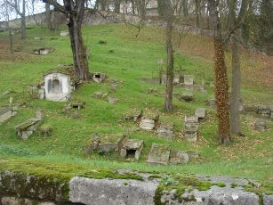 On distinguera les deux cimetières : comme nous l’avons vu, il ne reste quasiment plus rien du cimetière des clercs, ceux-ci étant inhumés sous des croix de bois. Le cimetière des laïcs, que l’on peut embrasser d’un seul regard, est une pente herbeuse sur laquelle se dresse ça et là quelques tombeaux ruinés. Sur les 230 concessions existantes, il n’en reste plus qu’une soixantaine sur lesquelles s’élève encore un monument, le plus généralement éventré ou affaissé. Les inscriptions sont de plus en plus difficiles à lire.