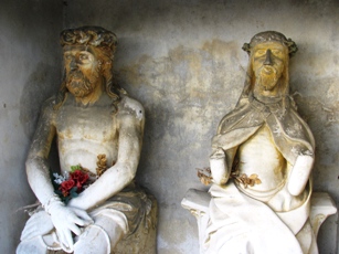 Dans ce cimetière, une chapelle insolite contient deux christs de facture relativement ancienne, improbable arrêt de bus pour l’éternité.