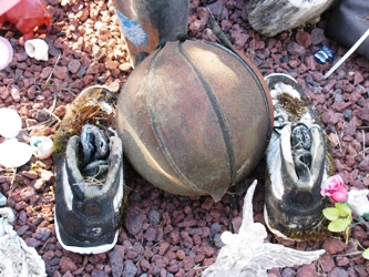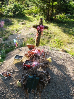 Beaucoup de militaires également, l’armée étant aux Etats-Unis un moyen d’ascension sociale pour des populations qui restent majoritairement marginalisées. L’acculturation des Quileutes, outre le drapeau, se singularise par le grand nombre de témoignages d’attachement au christianisme : les croix, mais aussi les chapelets déposés en grand nombre.