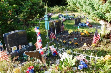 Il règne dans le cimetière Quileute de La Push une ambiance sereine pourtant : si les tombes les plus anciennes sont matérialisés par des stèles, les plus récentes sont généralement de simples tas de terre surmontés d’une croix et d’une infinité de babioles rappelant le souvenir du défunt.