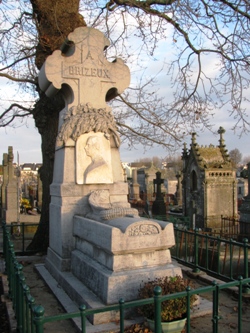 médaillon est en marbre qui orne sa tombe est d’Antoine Etex. Sur cette même sépulture, on peut lire l’inscription suivante en breton : Brizeux, Barz biéo melen, aman a zo beziet Hennez, a wir galon, garé er vretoned, ce qui signifie : Brizeux, barde aux blonds cheveux est ici inhumé / celui là, d’un vrai coeur aima les bretons.