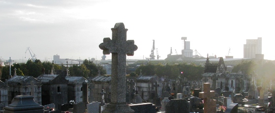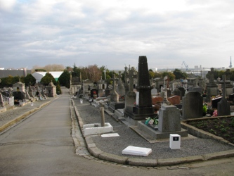 Du cimetière, la vue porte sur les chantiers du port de Lorient : la nécropole témoigne du passé industrieux et portuaire de la ville, et nombreuses sont les tombes et chapelles appartenant à des armateurs, des capitaines aux longs-cours, des officiers maritimes, des ingénieurs des Ponts et Chaussées ayant travaillé pour les besoins de la marine, ou plus humblement des victimes de la mer.