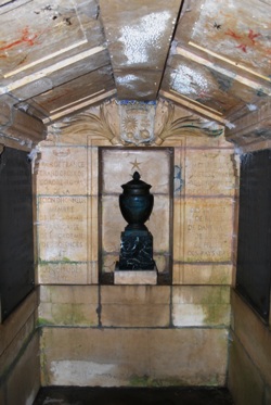Inhumé à l’origine dans la 25ème division du Père Lachaise (son tombeau se trouvait sensiblement près de la tombe de Manuel Garcia), il fut ensuite transféré à Saint-Julien-de-Mailloc. On sait à quoi ressemblait son tombeau grâce aux plans anciens du cimetière (source : Henry).