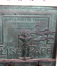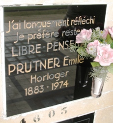 Où plus souvent, comme nous l’avons vu sur l’article de présentation du columbarium, par rejet de l’identité religieuse : cela se fait par des revendications diverses, de son appartenance à la libre pensée à une proclamation de son athéisme militant. Cette caractéristique du columbarium du Père Lachaise est intéressante dans la mesure où cette dimension est très faiblement représentée dans les columbariums des autres villes de France, où le rejet du religieux est beaucoup moins net (peut-être également parce que ce type de message y paraîtrait plus inconvenant).