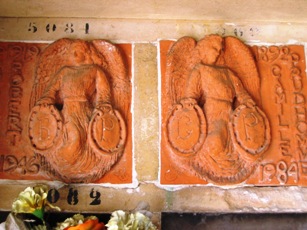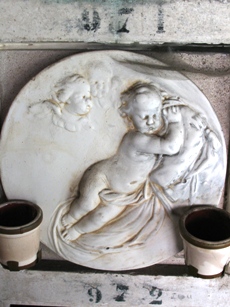 L’ornementation à caractère « artistique » se diffuse, par des procédés très variées, suivant ce que l’on peut appeler des « modes » : ainsi, l’usage du bronze et des médaillons, trop coûteux de nos jours, est remplacé par des œuvres en platre, en terre-cuite… Ces « œuvres » sont rarement signées.
