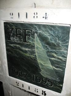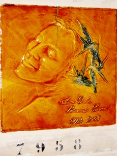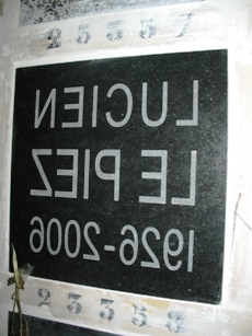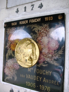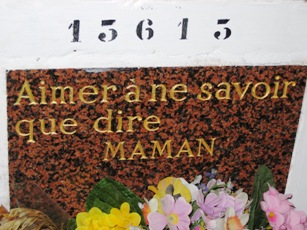 Sans doute ma plaque préférée du columbarium : sobre et simple, rien n’évoque davantage la fuite du temps que cet alignement de photos d’une même personne dont on ne sait rien à différentes époques de sa vie.