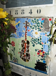 Méthode plus classique d’ornementation, l’’incrustation de photos, de dessins ou de mosaïques est devenue la norme, particulièrement chez les individus jeunes. Si certaines sources d’inspiration existent (personnages de bandes dessinées, Le Petit prince…), ce sont la plupart du temps des œuvres originales. Le résultat final est là aussi plus ou moins heureux, mais certaines plaques sont de véritables petits chefs d’œuvres de virtuosité.