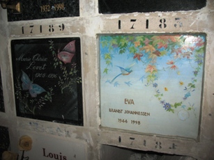 Ce petit article à pour but de présenter la diversité qui s’exprimer de plus en plus sur les cases du columbarium. Si le nom et les dates gravés sur une plaque noire restent la norme, on voit apparaître effectivement depuis une vingtaine d’années une personnalisation, au résultat plus ou moins heureux, des derniers habitacles de nos contemporains.