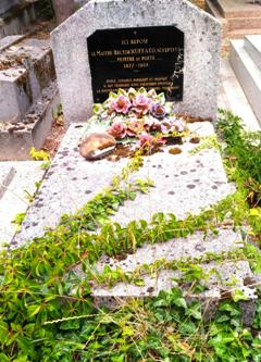 l’impressionnisme au fauvisme. Il fut l’un premiers animateurs de l’avant-garde en Russie, se lia avec Kasimir Malevitch, et fonda plusieurs groupements d’artistes. En 1914, il s’installa à Paris, se consacrant à des décors pour les Ballets russes de Serge de Diaghilev, qu’il réalisa entre 1915 et 1922. Il ne retourna jamais dans son pays natal après la révolution bolchévique de 1917. Il repose avec son épouse, Natalia GONTCHAROVA (1881-1962), autre peintre russe célèbre, avec qui il élabora, dès 1909-1910, les fondements du rayonnisme, dont il écrivit le manifeste en 1912. A Paris, ils reçurent l’appui des époux Delaunay (div 7).