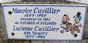 devenus leurs amis, et doivent se défendre contre d’autres animaux dangereux. Maurice Cuvillier assura la réalisation des albums de sa création jusqu’à sa mort : son œuvre fut ensuite poursuivie par Jean-Louis Pesch. Sa tombe est ornée d’une très belle plaque émaillée qui reproduit ses petits personnages (div 14).