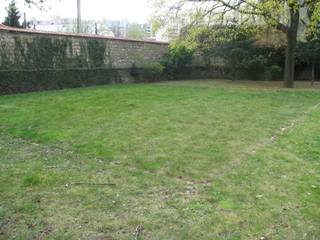 Etrange que ce "carré" : sans information, vous passez devant sans même vous en rendre compte. On ne peut en revanche s’empêcher d’éprouver un petit frisson à la vue de ce quadrilatère de pelouse, délimité uniquement par un différentiel de la couleur de l’herbe, lorsque l’on sait quelle était sa fonction !
