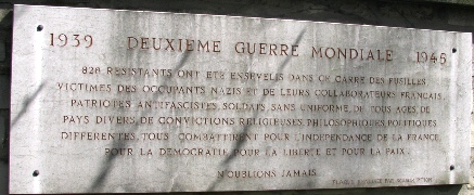 - Le mur de la 39ème division est recouvert de plaques témoignant des exécutions, autant de témoignages individuels, mais également une large stèle rappelant que "828 résistants furent ensevelis dans le carré des fusillés".