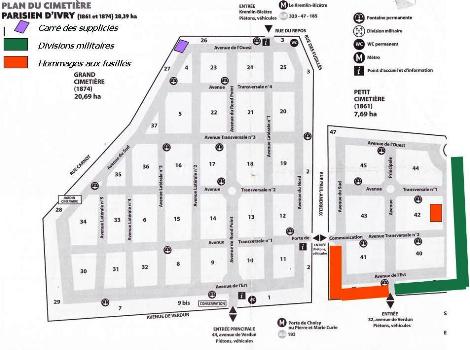 Les Fédérés furent inhumés dans la partie qui fut cédée au Kremlin-Bicêtre, ce qui explique pourquoi il n’existe pas de monument à leur mémoire au cimetière parisien d’Ivry, alors qu’il y en a un dans celui de Bicêtre. On ignore le nombre de nombre exact de Fédérés déposés dans les fosses communes d’Ivry, mais on raconte que "leurs corps débordaient dans les allées"...