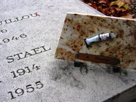 Sur sa très simple dalle funéraire figurent gouache et instruments de peintre malheureusement régulièrement volés. Avec lui repose sa compagne, Jeannine GUILLOU (1909-1946), qui fut également peintre.