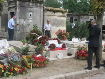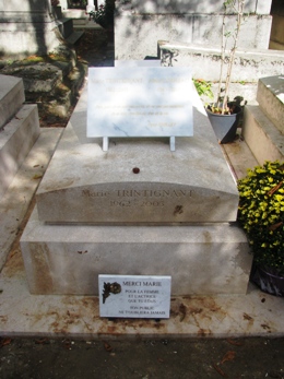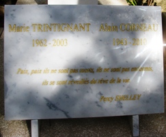 Son identité est déjà indiquée, à coté de celle de Marie Trintignant, sur la tombe. Sur leur plaque épitaphe figure une phrase de Percy Shelley.