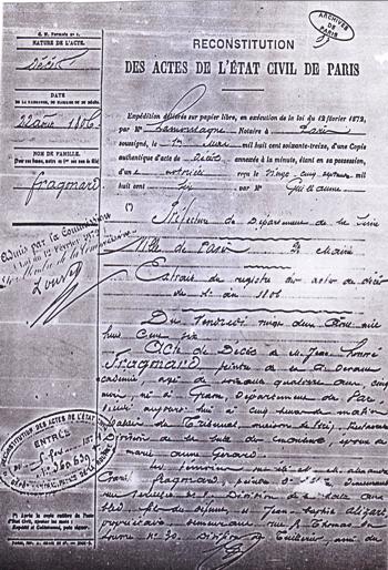 Reconstitution de l’acte de décès de Jean-Honoré Fragonard - Paris.